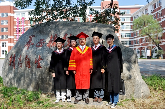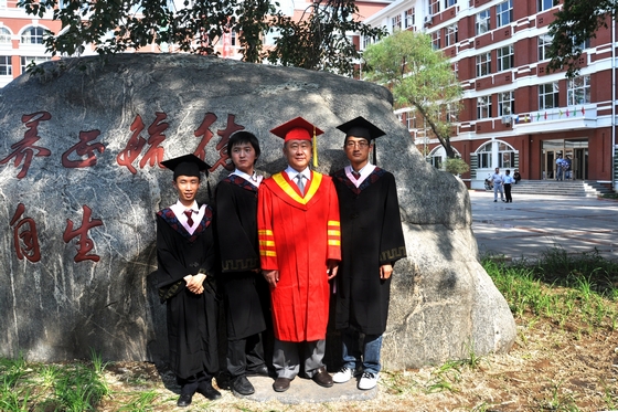 北疆炎夏,云淡风轻,嫩水之滨,天高水蓝,齐大校园,水清木华。6月17日下午,我校学位委员会主席、校长马立群教授身着校长服,在百忙之中专门抽出时间,与部分毕业生同学们在校训石前合影留念,同毕业生同学谈心交流。