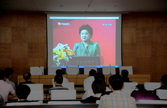 6月23日上午,教育部、团中央全国高校学生“永远跟党走”主题暑期社会实践活动启动仪式主会场设在北京大学,各高校设分会场。学校党委副书记盖元臣,校团委书记李秀梅,团委副书记赵振华,各学院党委副书记、副院长以及各学院团委书记等在西主学术报告厅及时收看了启动仪式的现场直播。