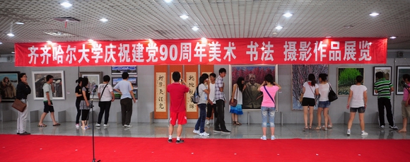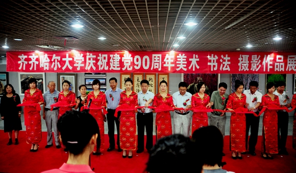 6月27日上午9点,我校庆祝建党90周年美术、书法、摄影作品展在美术馆开展。我校领导李海红、马立群、王凤琴、吕晓辉,齐齐哈尔市委宣传部副部长邱利锋、文联主席庄树谦、美术家协会副主席、秘书长宫秀志、摄影家协会主席陈寿安等领导出席开展仪式并剪彩。学校党群职能部门和各学院负责人及全校师生代表参加了剪彩仪式。剪彩仪式由党委宣传部部长李敏义主持。
