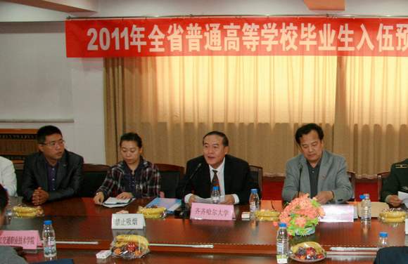 下午,2011年全省普通高校毕业生入伍预征督查工作第一督查组深入到齐齐哈尔各高校实地查看了毕业生预征工作情况,并向各高校提出了督查指导意见和建议。
