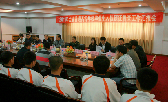 2011年全省普通高校毕业生入伍预征督查工作第一督查组同参加会议的各高校入伍预征的毕业生代表进行了座谈,倾听了他们关于入伍参军的想法、今后的打算,以及对预征兵工作、毕业生就业工作等方面的意见和建议。