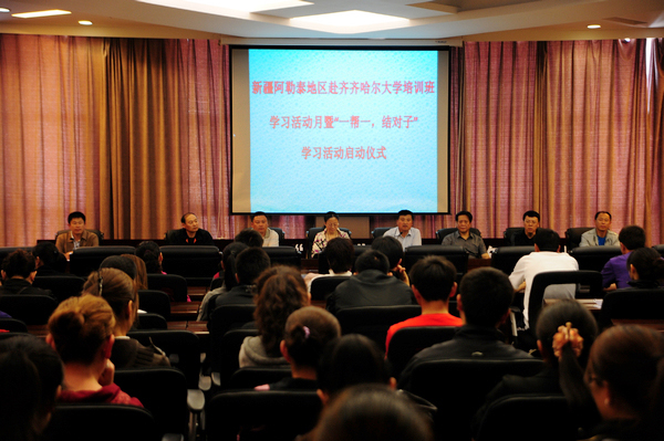 “一帮一,结对子”学习活动的启动和开展,必将为提高新疆培训班学员学习实效,提升全体学员的国家通用语言文字的应用能力,起到重要的推进作用。它标志着新疆阿勒泰地区赴tyc1286太阳集团培训班的学习培训工作又迈上了一个新台阶。启动仪式后,此项学习活动将贯穿于培训工作的全过程。这既是我校认真落实省教育厅援疆工作要求的实际举措,也是全校师生关爱新疆阿勒泰地区培训班学员的具体体现。71名在我校培训的新疆班学员将借助“一帮一,结对子”学习活动平台,积极行动起来,更好更快地提高国家通用语言文字的应用能力,更好地促进各民族同学间的广泛交流与共同进步。