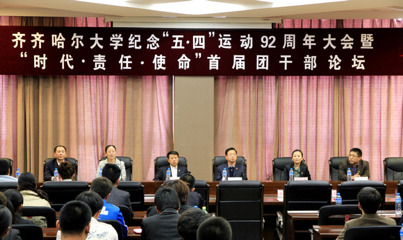 在庆祝建党90周年、我校上下深入开展创先争优活动、全面推进高水平大学建设之际,为纪念“五四” 学生爱国运动92周年,大力弘扬“五四”精神,不断提高团干部的思想认识和工作水平,扎实推进我校共青团组织创先争优活动深入的开展,进一步激发青年学生爱国爱校、勤奋学习、实践创新、自立自强、奋发有为,引导团员青年以昂扬的精神风貌、优异的学习成绩和工作业绩为高水平大学建设做贡献,向党的90华诞献礼。5月3日下午,学校团委在德润大厦4楼会议室举办了纪念“五四”运动92周年大会暨“时代·责任·使命”首届团干部论坛。