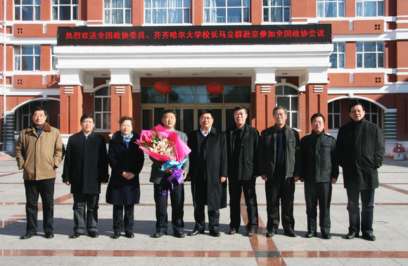 3月1日下午13时30分,全国政协委员、我校校长马立群肩负着全校师生的期望和全国政协委员的光荣职责,启程赴京参加政协第十一届全国委员会第四次会议。临行前,齐齐哈尔市领导张云志、高环、张贵海、李有彬、王小平、范天成、张敬先、黄力、孙建平等,我校领导李海红、王凤琴、盖元臣、张学军、姜守训、郑喜群、邓启刚、吕晓辉等在学校中区广场为马立群委员送行。