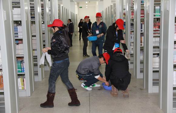 仪式结束后,青年志愿者们在中区图书馆开展了“清洁书架、整理书籍”等志愿服务活动。