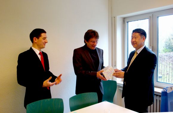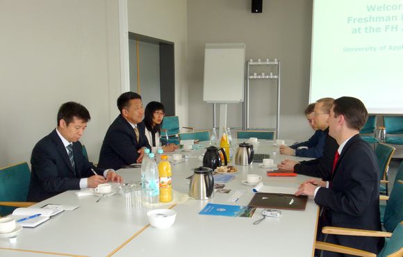 德国BSK国际教育机构主要是在欧洲和亚洲广泛开展跨国高等教育国际化的合作与交流,即“BSK德国大学联盟国际教育计划”。我校于2010年9月与该机构建立联系。此次出访受到了该机构执行总裁Kai-A Fiedler先生的热情接待,双方签署了《中德教育交流与合作框架协议书》,框架协议的签订,将推动中德双方在教师、学术和科研项目方面的相互交流,促进中德两国在合作培养国际化高级人才和高等教育专业建设方面的合作。在Kai-A Fiedler总裁的陪同下,我校代表团先后访问了德国波恩德福学院和亚琛应用技术大学,双方就教师交流、学术交流、合作培养国际人才等方面进行了深入的沟通,并达成了广泛共识。德福学院院长Karl Heinrich Frauns先生向代表团详细介绍了其德语培训项目,在亚琛应用科技大学,在国际项目负责人Prof. Dr. Hans Josef Ackermann先生 、国际学院院长Dr. Bernd Kraus先生的陪同下,代表团参观了化工实验室、纳米生物传感实验室等,其先进的硬件设施和人性化的管理模式给代表团留下了深刻的印象。
