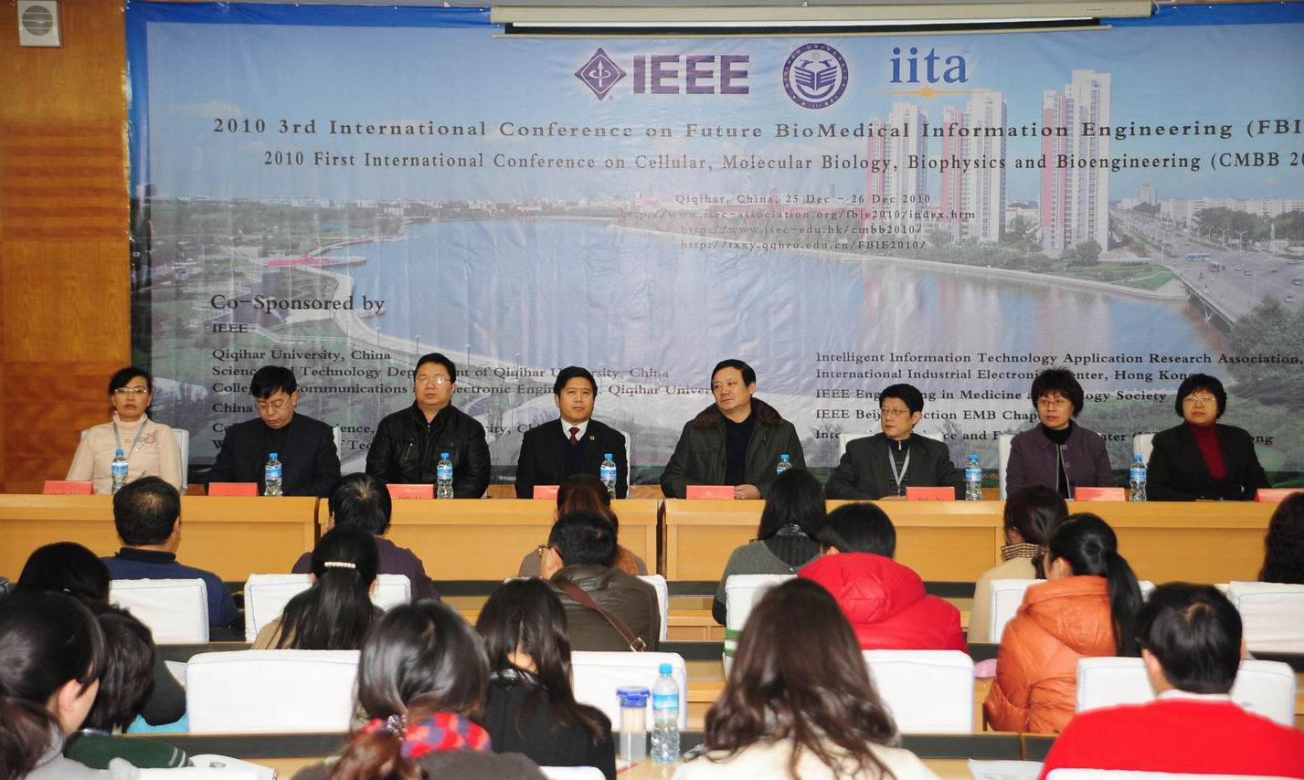 12月26日,由IEEE医学与生物工程学会发起,tyc1286太阳集团科技处、tyc1286太阳集团通信与电子工程学院、tyc1286太阳集团生命科学与农林学院和IITA协会共同承办的FBIE2010和CMBB2010国际学术会议在我校西主学术报告厅隆重召开,来自清华大学、北京大学、北京航空航天大学等国内高校、科研院所和澳大利亚昆士兰科技大学、新西兰梅西大学、台湾国立中央大学、台北科技大学等国家和地区的高校共196人参加了学术会议。我校副校长郑喜群、邓启刚出席开幕式,副校长邓启刚代表学校致欢迎词。通信与电子工程学院常务副院长姚仲敏代表承办单位致辞。