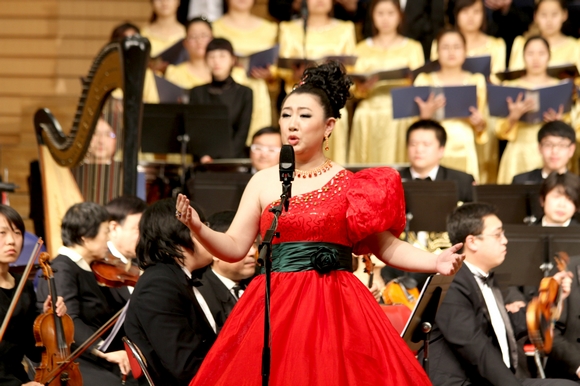 随着演出总指挥、我校音乐与舞蹈学院院长、国家级著名音乐指挥家孙相根教授刚劲有力的手势,音乐会在宏大的《红旗颂》中拉开了的序幕。