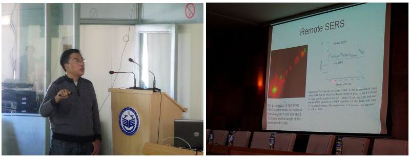 报告会上,孙萌涛博士首先介绍了自己目前研究的表面增强拉曼散射、电荷和能量转移两个领域的研究现状,同时也介绍了中国科学院物理研究所纳米物理与纳米器件实验室的基本情况。接着他从“表面增强拉曼散射的实验和理论研究”的基本原理,实验样品的制备,具体的实验操作技术,实验数据的分析和理论计算等几方面详尽阐释了报告内容,并向大家介绍了今年他在国际上取得的最新研究成果。