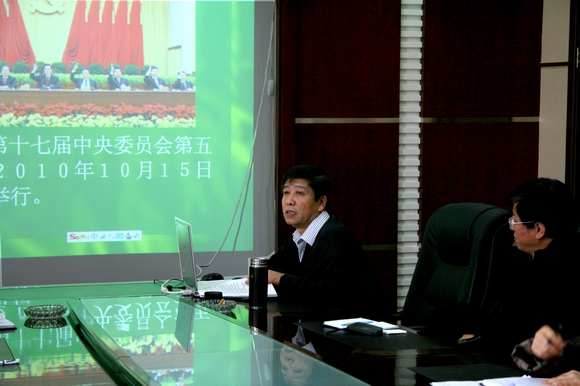 校党委宣传部长李敏义作了题为《学习五中全会精神 展望未来发展蓝图》的专题学习辅导。李敏义同志从十二五规划建议提出的背景、主要内容以及备受关注的几个亮点等三个方面对十七届五中全会通过的《中共中央关于制定国民经济社会发展十二五规划建议》主要内容和精神进行了深入浅出的解读。