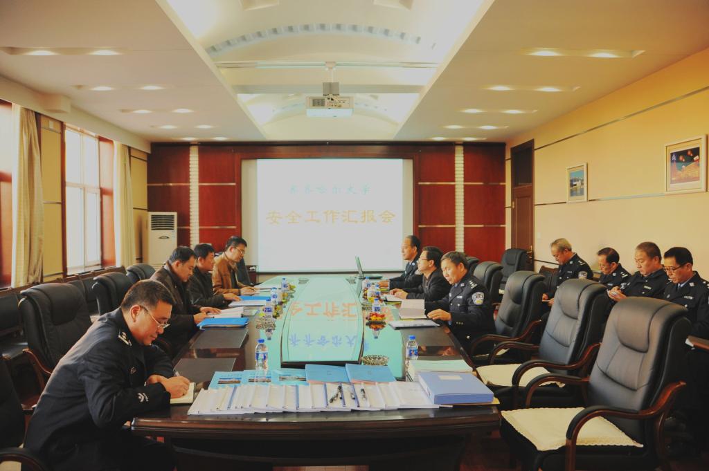 在汇报会上,学校党委副书记盖元臣从组织落实重视到位、警钟长鸣措施到位,维稳护安保障到位等几方面汇报了我校安全工作的基本做法和特色工作。