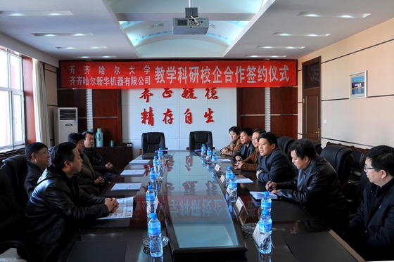 副校长郑喜群说,齐大是在美丽的鹤城土地上发展壮大起来的综合性大学,多年来得到了驻地各界的大力支持。服务地方经济社会发展和齐市人民,是所有齐大人共同的心愿。他表示,齐大将进一步贯彻落实黑龙江省高等教育强省建设规划,加强与企业界的联系与沟通,创新和完善校企共建合作机制,不断拓宽教学科研工作服务地方经济建设的渠道,整合优势资源,提升服务水平,为推动企业与学校的互利双赢和可持续发展做贡献。