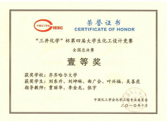 2010年10月31日,2010 “三井化学”杯第四届大学生化工设计总决赛在中南大学落下帷幕,我校“博弈队”荣获全国一等奖,我校其他7支队伍获全国优秀奖。