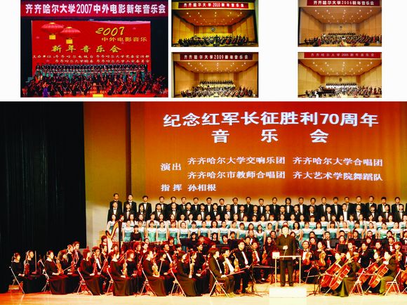 学校交响乐团为来校参加论坛的的省委宣传部、省委高校工委、省教育厅有关领导、齐齐哈尔市、大庆市、黑河市、绥化市、大兴安岭地区等黑龙江省西部地区五地市宣传部领导、十三所高校专家学者代表、企业界代表、新闻媒体记者、我校师生代表等1200余人再次奏响气势宏大的钢琴协奏曲《黄河》第四乐章、《红旗颂》等经典曲目。这是我校弘扬高雅艺术、传播先进文化的缩影。