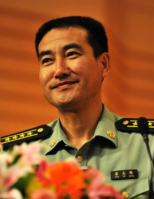 一位女生站起来问翟志刚大校,我从报道上了解到您在上学前家境比较贫寒,想请您谈谈是什么样的精神在激励着您?