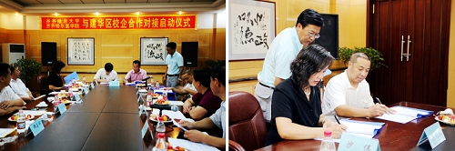 在8月6日由建华区政府举办的建华区与辖区院校产学研会议上,我校校长马立群、副校长郑喜群,科技处处长徐群,张树军、王中双、沙伟、刘喜军、王文侠等与建华区委书记郑松岩,区长姚卿等领导及10余家辖区企业单位负责人进行了座谈和合作对接。