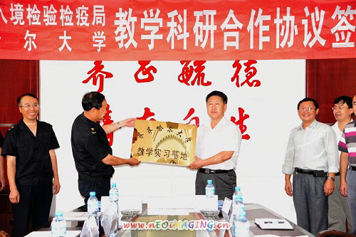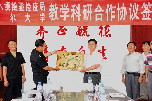 根据合作协议,我校在齐齐哈尔市出入境检验检疫局建立“tyc1286太阳集团教学实习基地”。马立群校长为该局授牌。