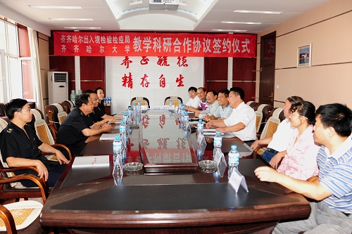 9月4日下午,我校与齐齐哈尔市出入境检验检疫局“教学科研合作签约仪式” 在中区主楼504会议室隆重举行。