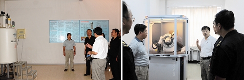 在我校有关人员的陪同下,齐齐哈尔市出入境检验检疫局任庆贵局长一行深入到电子显微镜室、400兆超导核磁共振室、生命科学与工程学院有关实验室进行了实地考察,并参观了美丽的环湖校园。