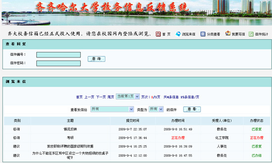 校长办公室能够对信件进行全程的监督和催办,校级领导能够随时登录系统了解师生所反映意见和建议,并对重要的信件作出批示。由于学校领导直接参与到信箱的管理之中,师生反映了什么问题和建议,各职能部门是如何处理和答复的,校领导都能够随时了解。对于师生信件的回复,不光体现出职能部门的工作能力和水平,还代表着部门的对外形象,因此过去或多或少存在的推诿扯皮、怠慢敷衍等问题将得到有效解决,各职能部门的工作效率将明显提高,工作态度也将进一步改善。