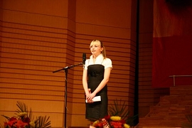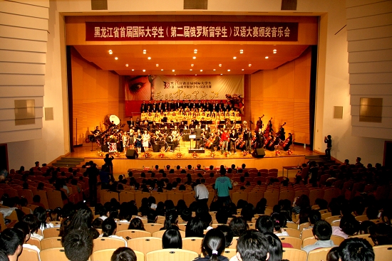 6月12日下午13时30分,大赛颁奖仪式暨文艺演出在我校音乐厅隆重举行。黑龙江省教育厅副厅长辛宝忠、黑龙江省教育厅国际合作与交流处处长张大铸、我校领导邓福庆、王凤琴、张学军、曲伟建、吕晓辉等出席颁奖仪式。我校近千余名师生代表同各参赛代表队一起参加了颁奖仪式。