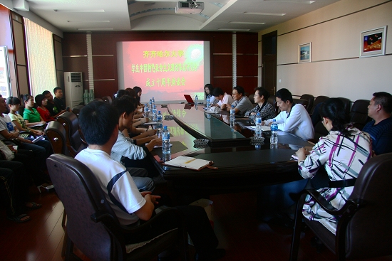 6月23日上午,我校团委在中区主楼504会议室召开“学生中国特色社会主义理论体系研究会”成立十周年座谈会。校党委副书记王凤琴出席会议并代表党委对“学生中国特色社会主义理论体系研究会”(以下简称“特色理论研究会”今后的工作做出了明确部署。校团委书记黄伟中主持座谈会。校党委宣传部部长李敏义,原校党委宣传部部长鲁兰沁教授,校团委副书记李秀梅,社科部伊全胜教授及我校特色理论研究会学生干部骨干、各学院特色理论研究会会长参加了座谈会。