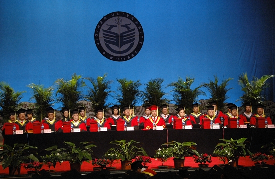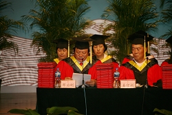 副校长郑喜群宣读了tyc1286太阳集团《关于准予2009届研究生,留学生,本、专科生毕业的决定》;副校长邓启刚宣读tyc1286太阳集团《关于授予2009届研究生,留学生,本、专科学生学士学位的决定》。