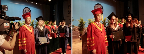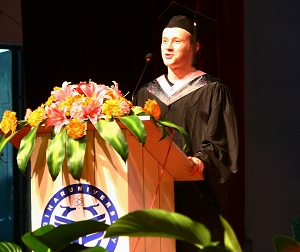 毕业生代表、理学院张卫明同学,留学生代表、国际交流学院俄罗斯籍阿力特在毕业典礼上发言,祝福中国,祝福母校,特别是阿力特同学“愿架起中俄友谊的桥梁”的美好心愿和他那流利纯正的汉语赢得出席典礼仪式的领导和师生的热烈掌声。