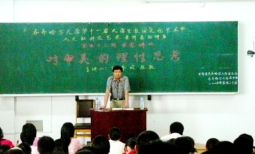 5月20日14:20,我校社科部主任、黑龙江省高等思想政治教育教学名师何春岐教授应邀在西主202阶梯教室主讲第53期“求索”讲坛,为200余名师生作了题为“对审美的理性思考”的专题讲座。
