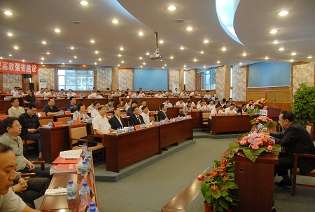 省委常委、宣传部长衣俊卿在讲话时强调,建设高教强省是省委、省政府贯彻落实科学发展观,坚持“优先发展教育,建设人力资源强国”战略,提高高等教育水平和服务经济社会能力的重大抉择。要坚持把发展作为首要任务,做强高等学校,提升服务能力。各高校要以《国家中长期教育改革和发展规划纲要》的制定为契机,切实增强省、校两级教育发展规划研究和战略研究。要结合高教强省战略的实施以及全省教育发展规划和战略规划的研究,扎实思考高教发展格局和各高校定位问题。要切实解决制约我省高校进一步提升水平、增强实力的瓶颈因素,即师资队伍建设问题。要以教育部教育教学质量工程建设为核心,进一步解放思想,深化改革,提高教学质量和人才培养质量。要以校园建设为载体,加强制度建设和管理,化解校园矛盾。各级各类高校要确定好、坚持好办学定位,坚持走特色发展之路。要实施人才强校,加强人才培养,不断优化人力资源。牢固树立教师资源是第一资源的理念,建立科学合理的人力资源管理制度,造就一批有影响的学科带头人、具有创新能力和发展潜力的中青年学术骨干、能战斗的创新团队和优秀群体。要不断提高创新能力,推动科研发展,提升竞争优势。始终着眼重大科技前沿和我省经济社会发展需求,鼓励和引导高校科研工作人员深入实际、深入市场、深入社会生产实践,推进产学研深度融合。要推进资源共享,扩大合作交流,形成区域联手、校际互动、共同发展的格局。促进高校之间在教学、科研、学科建设、学生管理等方面优势互补。要坚持科学管理,推进民主治校,不断完善现代大学制度。要积极优化路径,主动融入社会,提高服务能力和水平。各高校要选准突破口,找准契合点,在服务中求支持,在贡献中求发展。要把学校的人才、技术、智力要素与企业的资金、设备要素有机结合起来,建立校企合作的长效机制。要强化文化创新与文化引领功能,推进文化产业园区与人文社科基地建设,在服务具有引领作用和发展潜力的现代文化产业上实现新突破,学校的科学发展和高教强省建设目标的实现做出贡献。