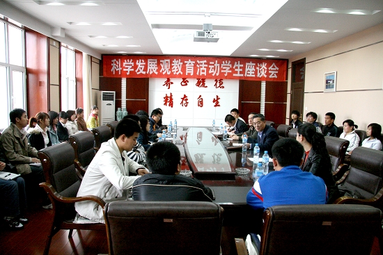 4月16日下午,学校在计算中心二楼会议室召开深入学习实践科学发展观活动教师座谈会。校长马立群出席,副校长郑喜群主持座谈会。全校各教学单位教师代表和相关职能部门负责人参加了座谈。