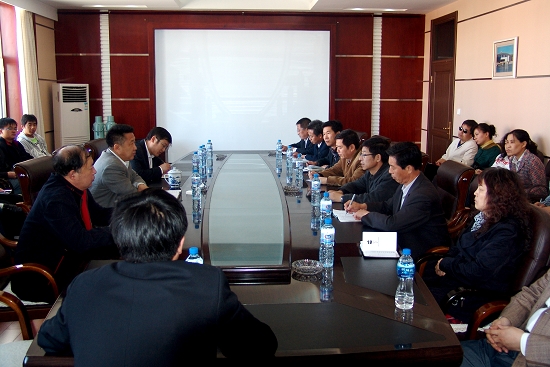 上午10时30分,在结束对两个院系的现场考察之后,同轻纺学院和化工学院的领导及部分学科带头人、科研骨干、青年教师等教师代表进行了座谈。
