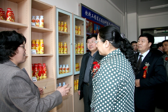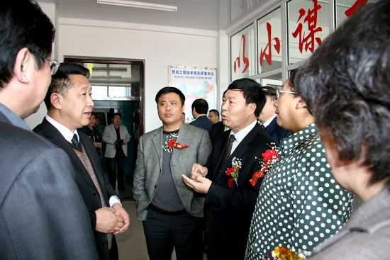 齐齐哈尔市副市长曲秀丽、北大荒集团绥化分局局长于胜军共同为“饮料工程技术校企研发中心”揭牌。