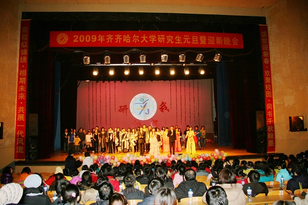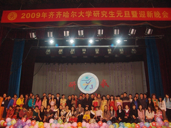 欢天喜地辞旧岁,师生和谐迎新年。12月22日晚,经过精心筹备,由校研究生处主办,校研究生会承办的2009年研究生庆元旦暨迎新年晚会在中区文化宫隆重举行。