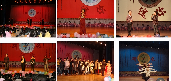 晚会上,研究生各专业研究生代表表演了歌曲、舞蹈、情景短剧、小品、诗朗诵、时装表演等活泼生动的14个精彩节目。