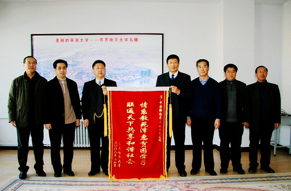 为支持和促进高等教育事业的发展,中国联通齐齐哈尔分公司干部职工再次为我校捐资10万元人民币,设立专项奖学金,用于奖励和帮助思想进步、学业优异、家庭经济困难学生顺利完成学业。