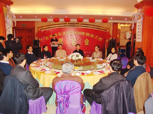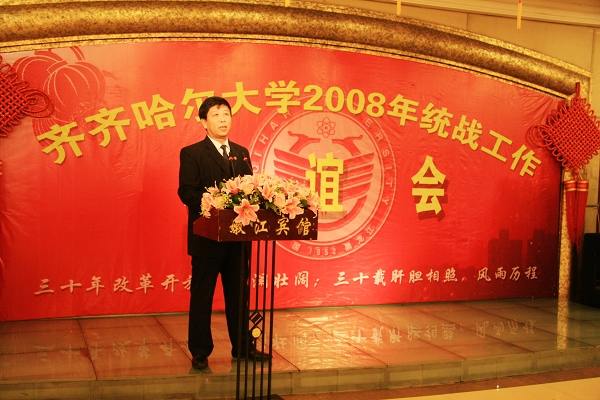 12月26日晚,嫩江宾馆宴会大厅张灯结彩、欢声笑语,一派欢乐祥和的气氛,我校2008年统战工作联谊会在欢快的迎宾曲中拉开帷幕。