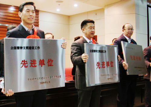 今年1月20日,中央文明委在北京召开全国精神文明建设工作表彰大会,隆重表彰第二批全国文明城市(区)、文明村镇、文明单位、全国精神文明建设先进工作者和第四批全国精神文明创建工作先进城市。我校光荣的被中央文明委命名为全国精神文明建设工作先进单位。