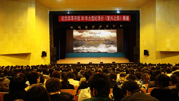 学生处组织全校学生干部于10月29日分别观看了两场纪念改革开放30周年大型纪录片(精选)《复兴之路》。