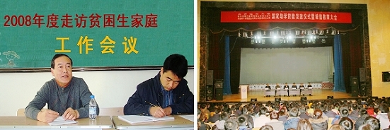 学生工作处处长王刚主持召开了走访调查工作会议,对调查走访工作做了全面的部署和安排。由于经济困难学生家庭普遍居住在偏远的农村,增加了走访调查工作的难度。为此,我校参加此次走访调查工作的老师于今年10月中旬以来,克服重重困难,不畏旅途劳顿,终于圆满地完成了各项走访调查任务。