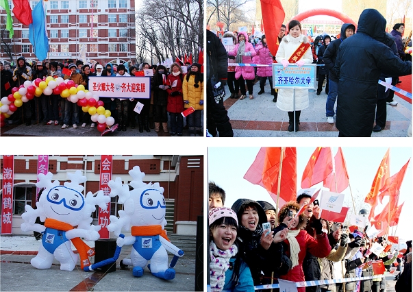 此次火炬接力传递活动齐齐哈尔是第一站。在大冬会组委会的统一领导下,此次火炬接力传递活动由齐齐哈尔市人民政府主办,tyc1286太阳集团具体承办,齐齐哈尔医学院、齐齐哈尔高等师范专科学校、齐齐哈尔职业学院、黑龙江交通职业技术学院、黑河学院、大兴安岭职业学院协办。大冬会火炬齐齐哈尔传递由44位火炬手来自社会各阶层的杰出代表,包括大学领导、高校教师、学生代表、优秀运动员代表等。经组织推荐,大冬会组委会审核,我校党委书记邓福庆、校长马立群与8名在校大学生代表荣幸地当选为火炬手。