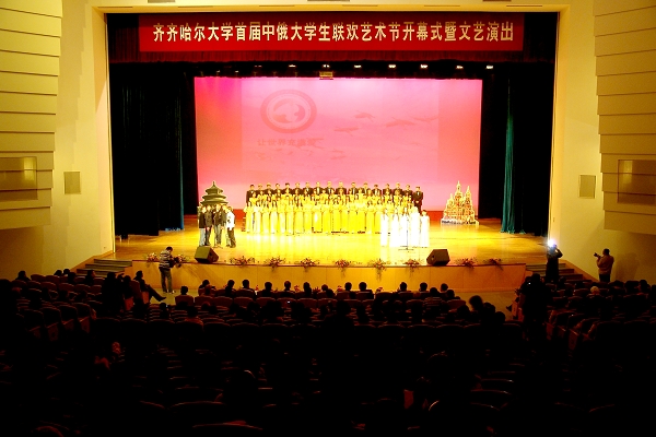 为落实中俄人文合作委员会第八次会议精神,进一步巩固“俄罗斯年”和“中国年”活动成果,增进两国大学生之间的沟通与交流,促进校际和地区之间在文化教育领域的交流与合作,受教育部和黑龙江省教育厅委托,我校承办的首届中俄大学生联欢艺术节于11月17日晚19时,在我校音乐厅举行了隆重的开幕式暨文艺演出。
