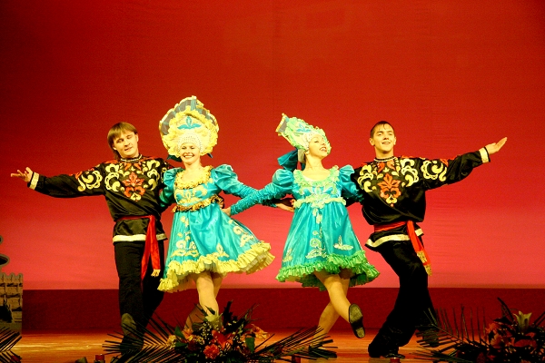 唱江华校长在致辞中代表我校近三万名师生对各级领导的信任与支持、对俄罗斯各兄弟院校的积极参加和鼎力相助表示衷心的感谢,对参加此次艺术节的中外嘉宾表示热烈欢迎。他说,中俄两国都有着光辉灿烂的文化艺术传统和成就。文化艺术交流对于提升两国关系、增进青年一代的相互了解和友谊发挥着独特的纽带作用。十几年来,伴随着我校前进的步伐,以开办合作办学项目、互派教师与学生、和普京总统亲自授予我校李延龄教授“友谊勋章”为标志,我校同众多俄罗斯高校的教育合作和文化艺术交流得到了长足的发展,取得了丰硕的成果,形成了鲜明的特色和品牌。他希望本届艺术节对展示两国传统文化、增进青年学生的了解和友谊、促进中俄两国文化艺术的交流与合作起到积极的推动作用。最后,唱江华校长宣布首届中俄大学生联欢艺术节开幕。