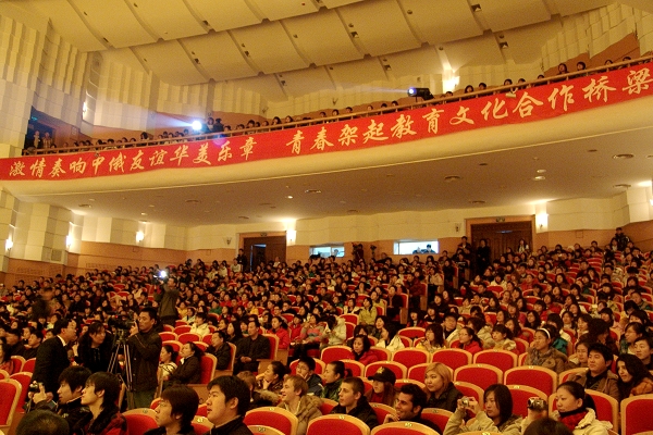 开幕式后,两国大学生演出了精彩的文艺节目。这些节目热情、活泼,富有鲜明的文化与传统特色,充分展现了两国青年学生的朝气与才华。历时近两个小时的演出过程中,晚会现场掌声迭起,气氛热烈。