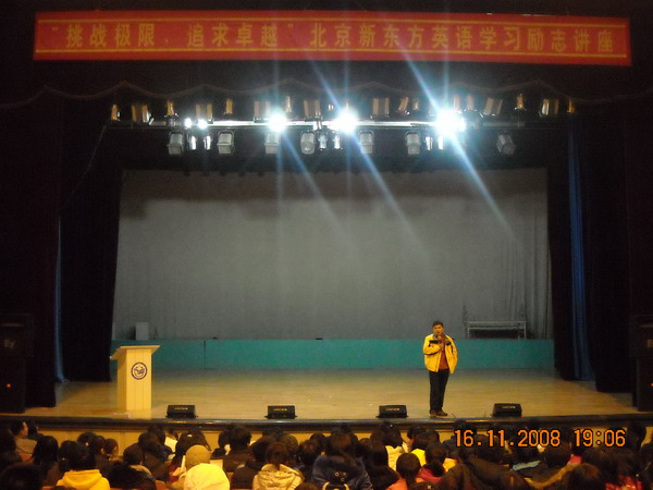 为提高广大同学学习英语的热情、增强英语学习能力,校团委于11月16日晚7时组织了“挑战极限,追求卓越”北京新东方英语学习励志讲座。北京新东方学校国外考试部主任李宏桥、哈尔滨新东方学校考试部主任李春亮在中区文化宫为我校学生做了精彩的演讲。