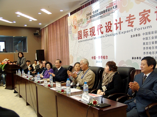 9月28日上午9:30,由中国服装设计师协会、中国工业设计协会、黑龙江省教育厅、齐齐哈尔市人民政府和我校主办,由我校艺术学院和金鼎亚麻集团有限公司承办的2008“金鼎杯”第二届中国国际亚麻服装设计大赛暨国际现代设计专家论坛在我校新落成的国际学术交流中心四楼会议室开幕。