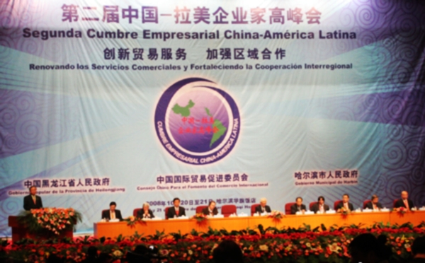 由中国国际贸易促进委员会、黑龙江省政府、哈尔滨市政府联合主办的第二届“中国拉美企业家高峰会”于10月20日上午在哈尔滨国际会议中心环球剧场开幕,自24个国家和地区的近300名企业家,以及联合国拉美加勒比经济委员会、泛美开发银行等国际组织的代表;国内21个省份的700余企业家参加高峰会。