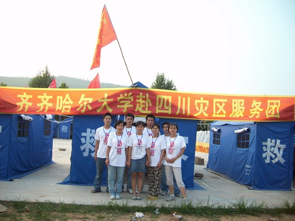 汶川大地震灾后重建工作启动以来,广元市剑阁县成为黑龙江省对口支援县。为了弘扬“服务基层,支援西部”的优良传统,更好地体现我校学生强烈的社会责任感和历史使命感,由我校团委等单位牵头组建了一支由陈前等9名四川籍学生构成的tyc1286太阳集团赴灾区服务团到灾区、重点在广元市剑阁县开展救援、重建、支教、灾民安置等志愿工作。