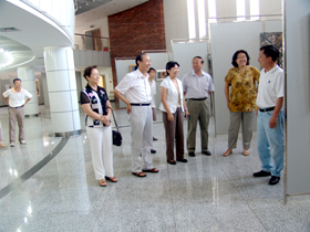座谈会后,在校领导的陪同下,尹晓岚实地考察了我校环湖校园的建设情况。她先后重点参观考察了我校生命学院正在建设中的科研楼、我校艺术学院美术馆和即将投入使用的国际交流学院留学生公寓大楼。