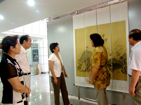 在美术馆,尹晓岚观看了正在该馆展出的由我校师生创作的美术作品,并听取了艺术学院领导的相关介。